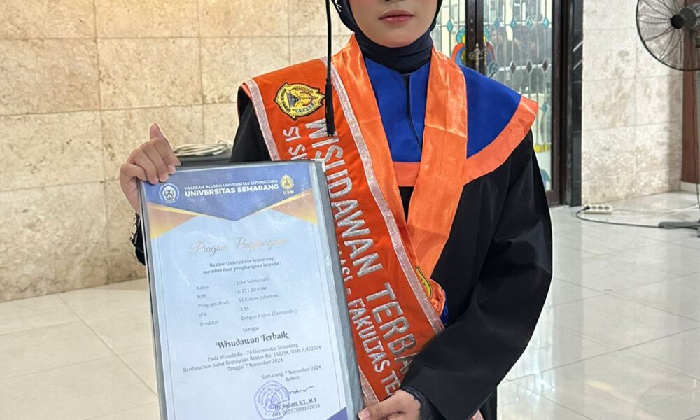SEMARANG – Dika Salma Laili dinobatkan menjadi wisudawan terbaik dari Prodi Sistem Informasi Fakultas Teknologi Informasi dan Komunikasi (FTIK) Universitas Semarang (USM) pada upacara wisuda ke-70...