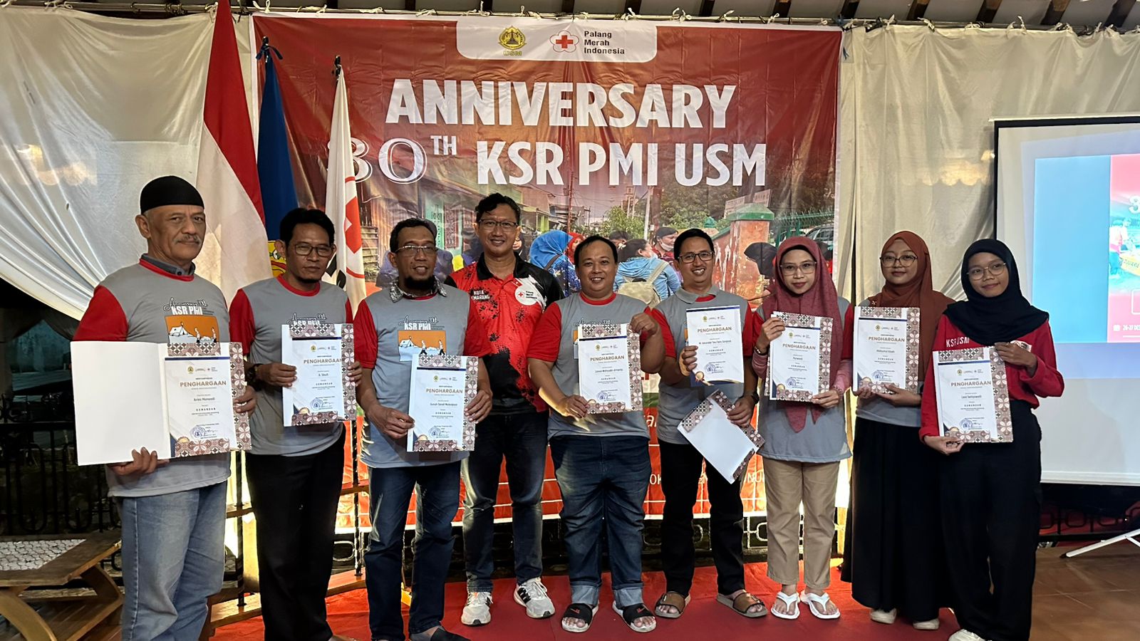 Penghargaan sebagai perintas KSR PMI Unit Universitas Semarang diberikan kepada Aris Monoadi, Andi Djatmiko, dan Zumar Makruf.