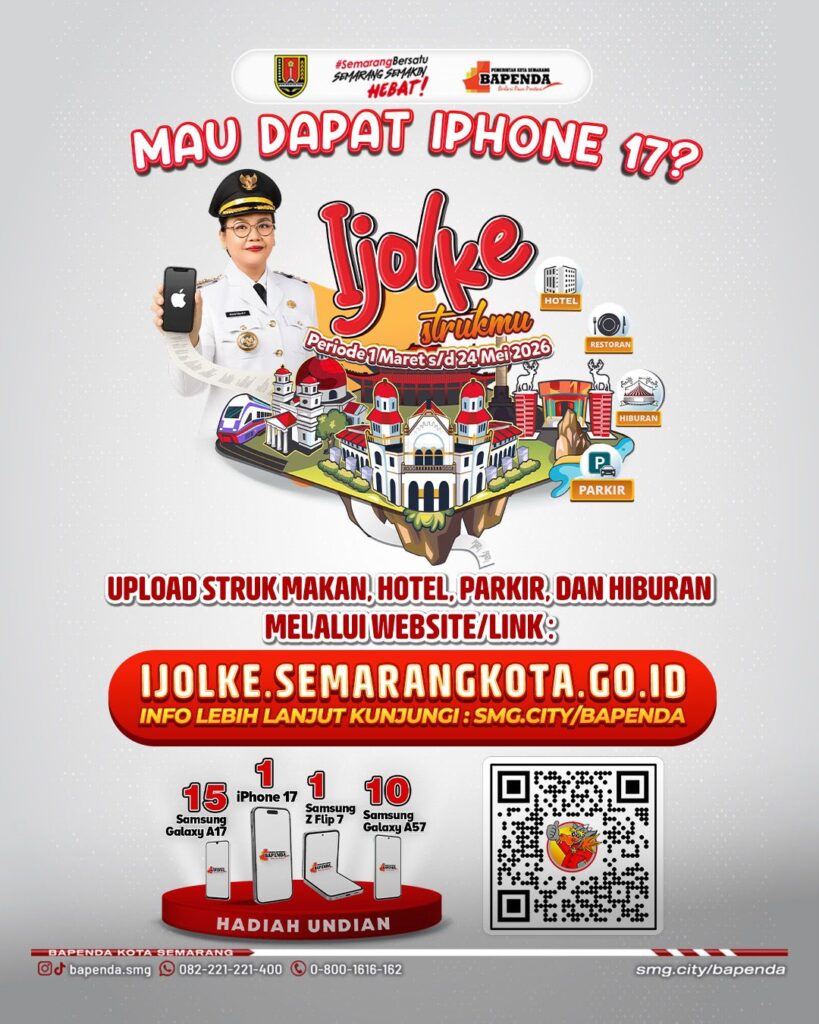 Semarang (usmnews)- Pemerintah Kota Semarang menekankan pentingnya ketaatan pajak dengan memperpanjang program diskon PBB sebesar 10 persen. Langkah ini memberi apresiasi nyata kepada masyarakat yang ikut mendukung pembangunan daerah tahun ini. Program “Ijolke Strukmu” juga menarik perhatian karena warga berkesempatan mendapatkan iPhone 17 Pro Max dan Gadget Mewah . Program ini langsung memicu antusiasme tinggi karena periode unggah struk masih berlangsung.