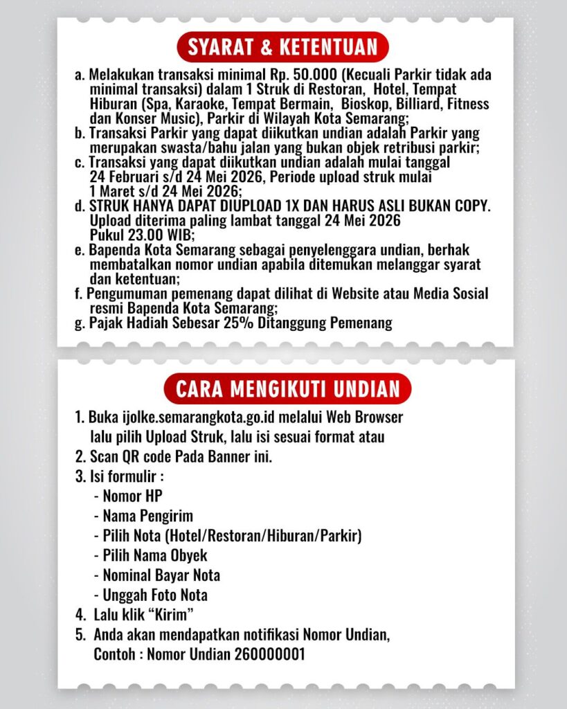 Pemerintah Kota Semarang menjamin transparansi dengan mengumumkan pemenang melalui situs resmi Bapenda. Pemenang wajib membayar pajak hadiah sebesar 25 persen sesuai aturan yang berlaku. Sistem digital membantu proses seleksi agar berjalan adil dan terbuka.