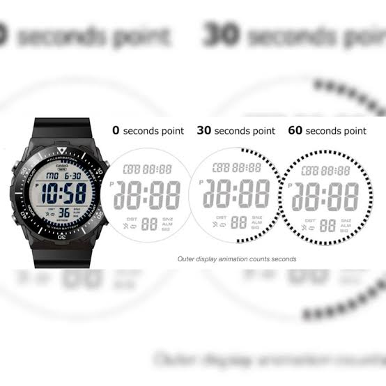 Layar: Desain layar bulat dengan visibilitas yang didukung oleh lampu latar Amber LED, memudahkan pembacaan waktu dalam kondisi minim cahaya.
