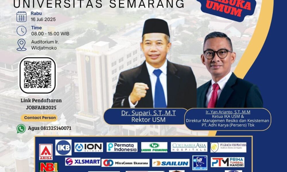 SEMARANG – Universitas Semarang (USM) melalui UPT UCAC (USM Career and Alumni Center) menggelar Job Fair & Career Expo 2025 yang di ikuti 40 Perusahaan Nasional...