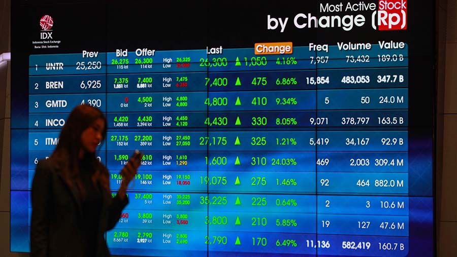 Pada perdagangan Senin (19/1/2026), IHSG ditutup menguat signifikan sebesar 0,64% ke posisi 9.133,87. Kenaikan ini didorong oleh volume transaksi yang sangat besar, mencapai Rp 35,92 triliun, dengan kapitalisasi pasar yang nyaris menyentuh angka fantastis US$ 1 triliun. Sektor energi dan properti menjadi penggerak utama penguatan indeks. Menariknya, aktivitas pasar didominasi oleh pergerakan saham-saham milik konglomerat ternama. Saham PT Bumi Resources Tbk (BUMI) mencatatkan nilai transaksi yang masif, sementara saham-saham di bawah bendera Prajogo Pangestu juga mengalami penguatan serentak. Tak ketinggalan, PT Astra International Tbk (ASII) memberikan kontribusi besar setelah mengumumkan rencana buyback saham untuk menstabilkan harga di tengah fluktuasi pasar.