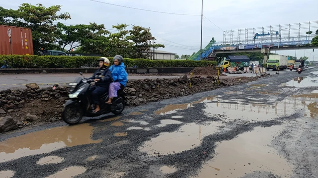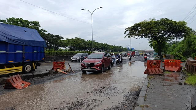 Lubang Tersembunyi: Genangan air hujan sering menutupi lubang sehingga pengendara tidak melihat kedalamannya.