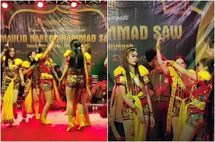 Sebuah insiden yang melibatkan kesalahpahaman visual telah memicu perbincangan hangat di jagat media sosial setelah beredarnya **video viral** yang menampilkan sejumlah wanita menarikan tarian tradisional **dolalak** dengan pakaian terbuka—berupa baju lengan pendek dan celana pendek—di sebuah panggung yang, secara kebetulan, masih berlatar belakang spanduk peringatan **Maulid Nabi Muhammad SAW**.