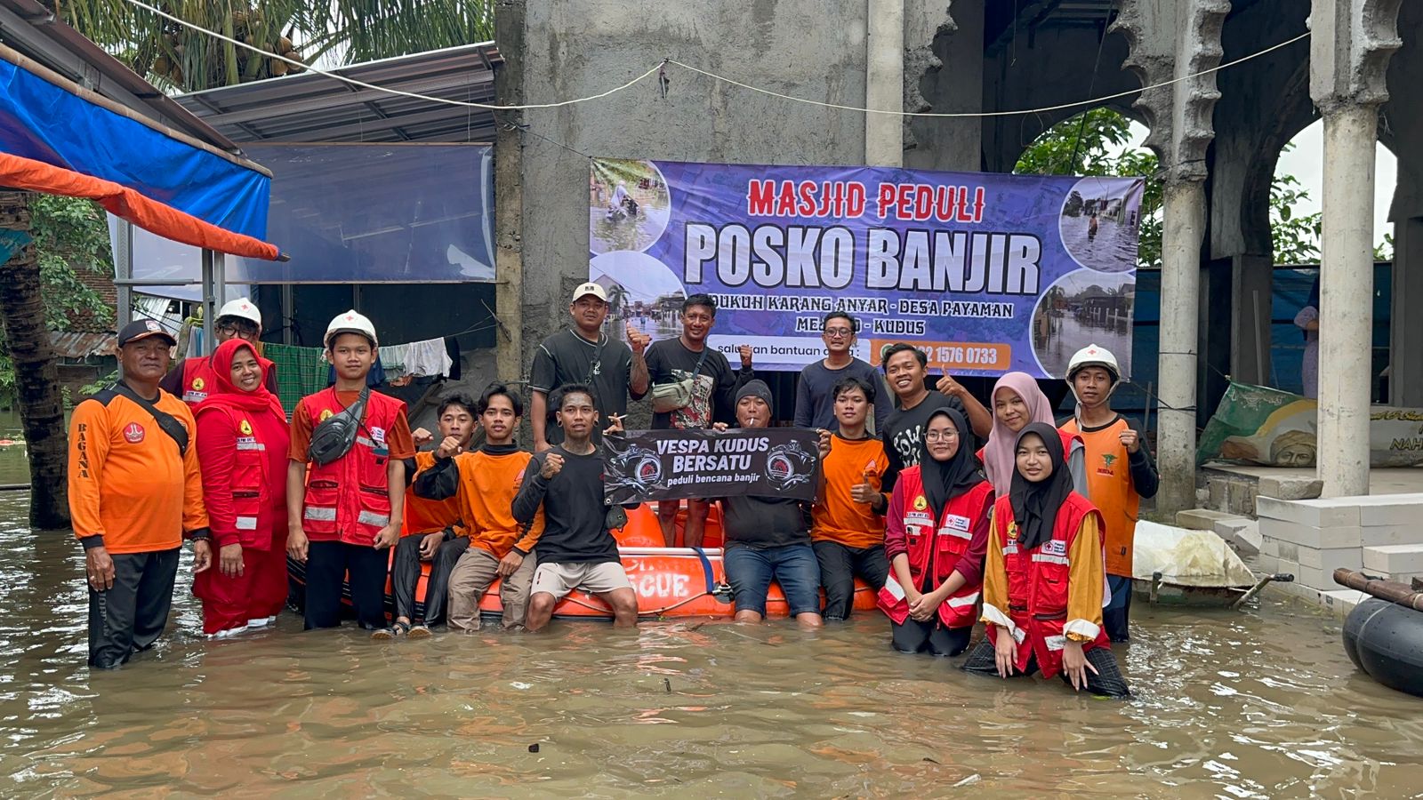 Komunitas Vespa terdiri dari komunitas Gembel Necis, Komunitas Bosok, komunitas Sakit Jiwa, komunitas Sowek’s, dan komunitas lain didampingi dari relawan Relawan Universitas Semarang USM yang tergabung dalam UKM Koprs Sukarela (KSR) PMI dan Forum Komunikasi Mahasiswa Islam (FOKMI) bersama Mapala Universitas Muria kudus (UMK) terjun langsung membantu distribusi logistik dan evakuasi warga terdampak banjir di Dukuh Karanganyar Desa Payaman Kecamatan Mejobo Kabupaten Kudus.