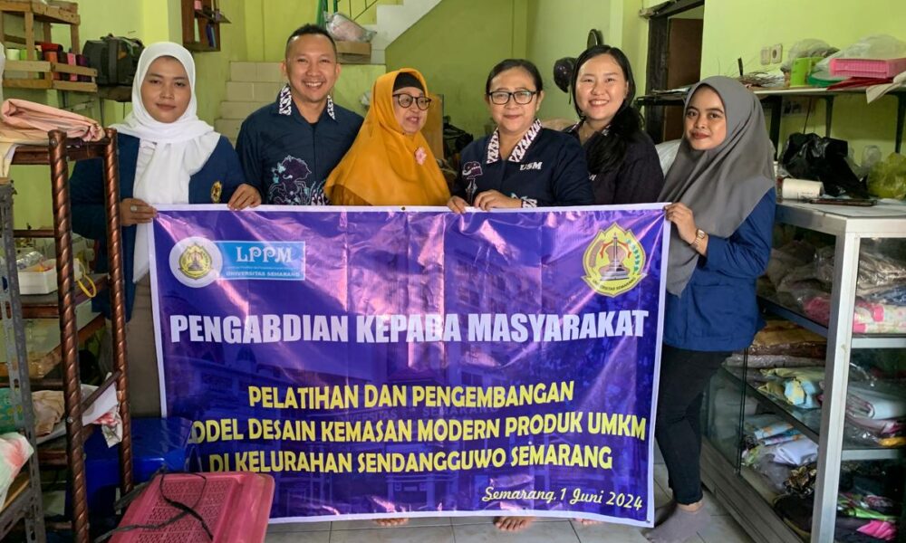 SEMARANG- Tim Pengabdian Kepada Masyarakat Universitas Semarang (PkM USM) yang terdiri atas dosen Fakultas Ekonomi memberikan pelatihan dan pengembangan model desain kemasan yang modern kepada pelaku...