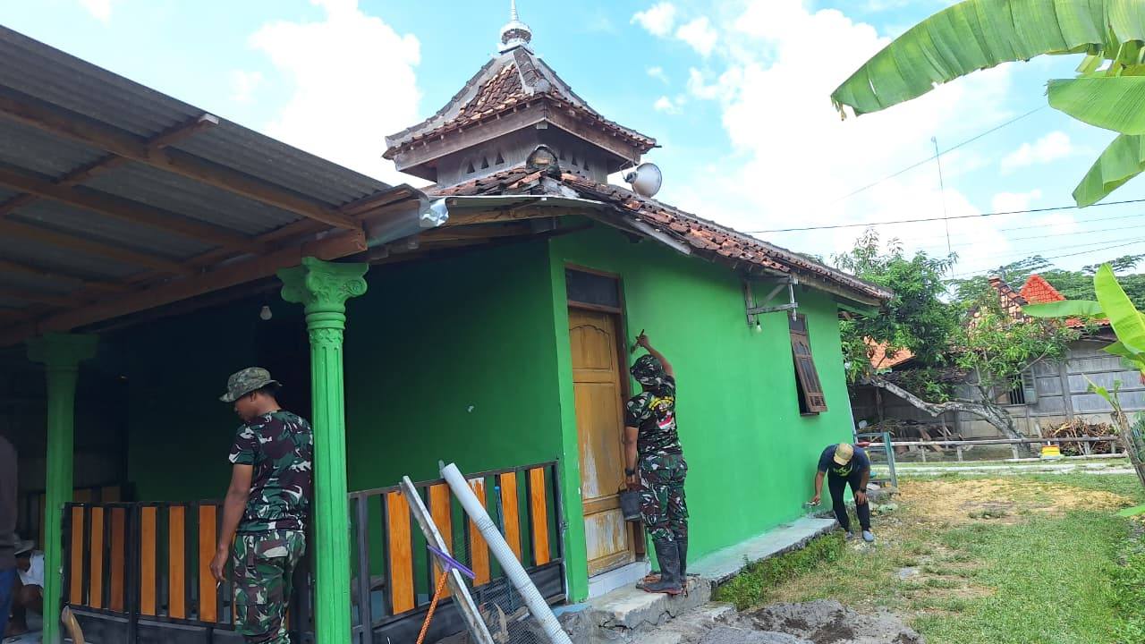 Rampungkan Rehab Mushola Al-Ikhlas, Satgas TMMD Lakukan Pengecatan