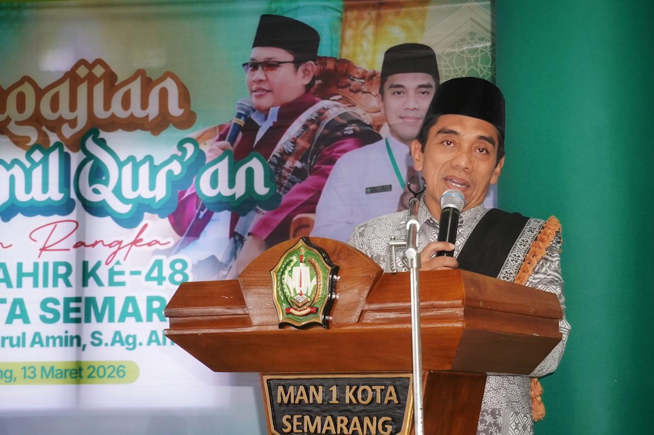 SEMARANG – Dalam rangka memperingati Hari Lahir (Harlah) ke-48, MAN 1 Kota Semarang menyelenggarakan kegiatan Pengajian dan Khotmil Qur’an yang diikuti oleh seluruh siswa kelas XII bersama bapak/ibu guru, pegawai, serta tamu undangan. Kegiatan ini dilaksanakan pada Jumat, 13 Maret 2026 di Masjid Darul Ulum MAN 1 Kota Semarang.