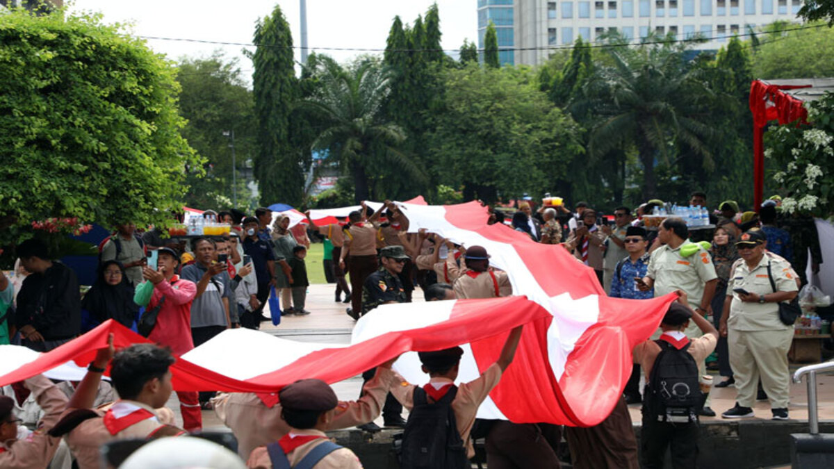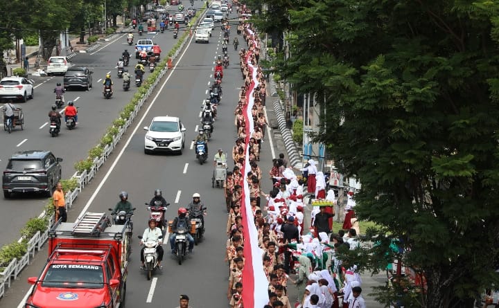 Semangat Hari Pahlawan 2025,10.000 Pelajar Semarang Bentangkan Kain Merah Putih Sepanjang 1.945 Meter