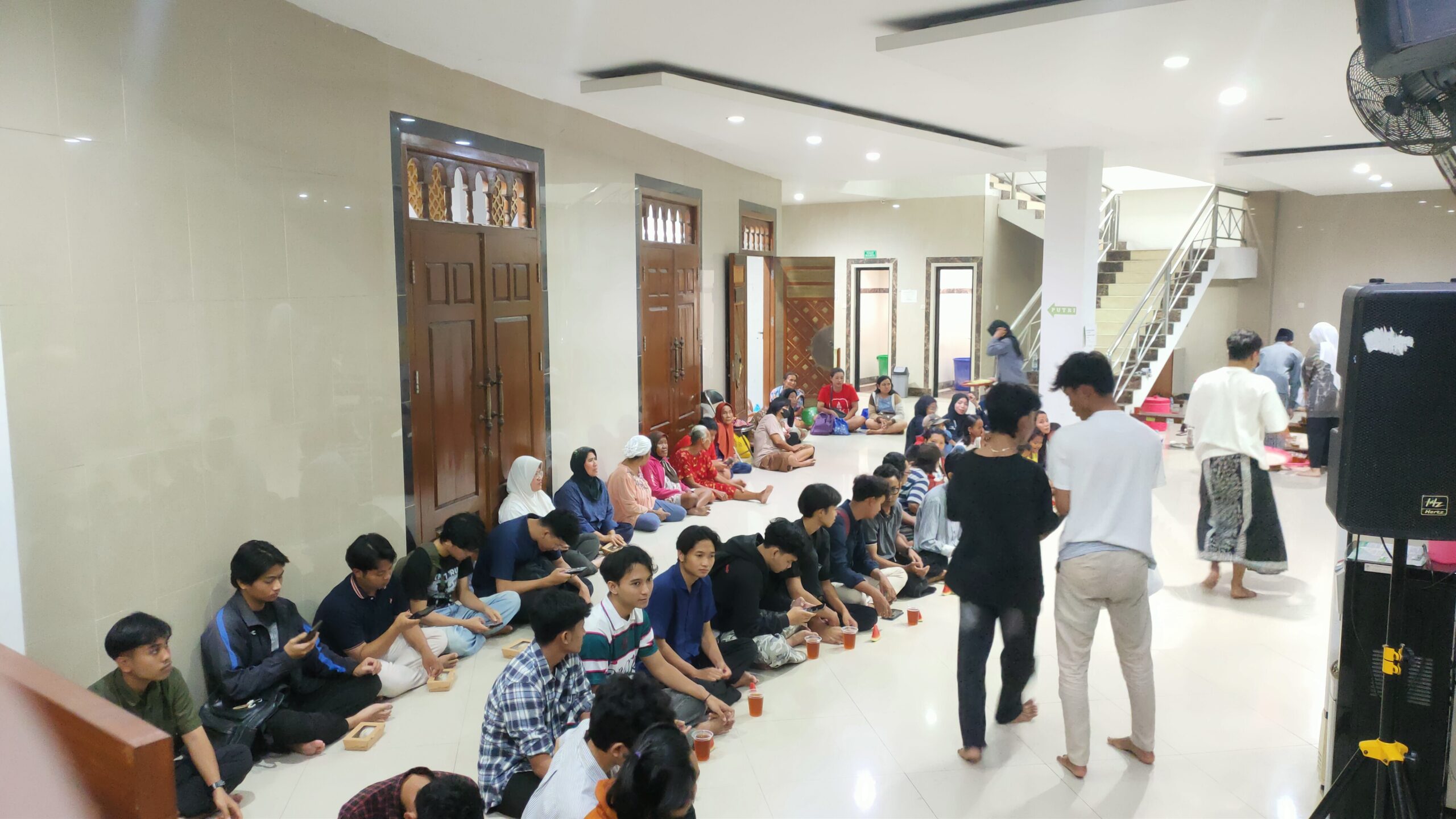 Suasana kebersamaan terlihat ketika masyarakat yang hadir menikmati hidangan berbuka puasa di lingkungan masjid. Jamaah yang datang tidak hanya berasal dari kalangan mahasiswa, tetapi juga warga sekitar yang memanfaatkan kegiatan ini sebagai sarana untuk berbuka puasa sekaligus bersilaturahmi.