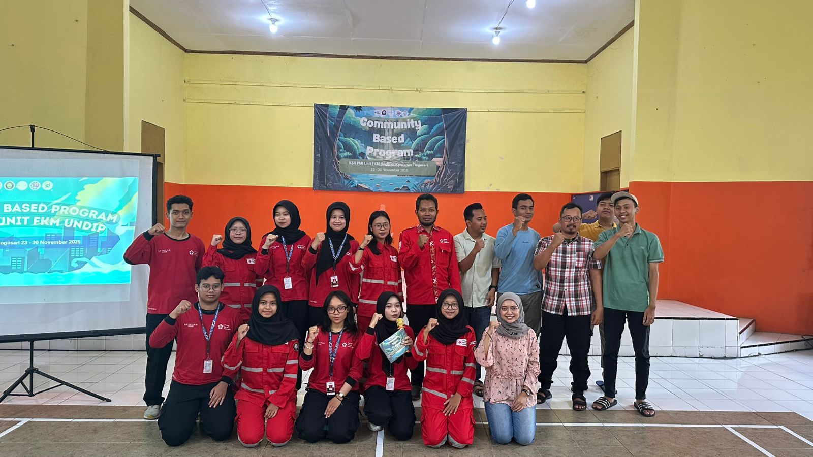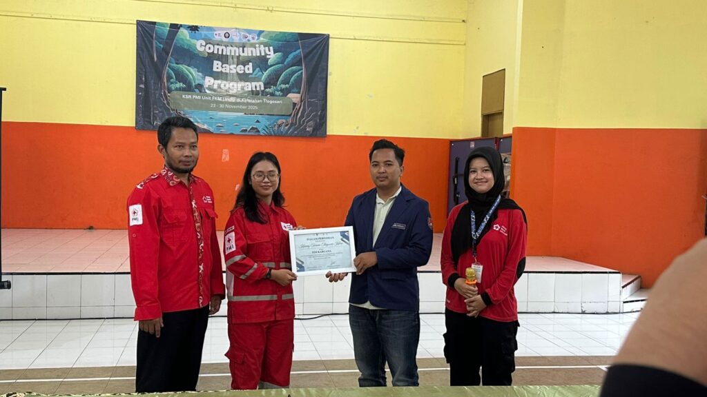 SEMARANG- Unit Kegiatan Mahasiswa (UKM) Kors Sukarela (KSR) Palang Merah Indonesia (PMI) Unit Fakultas Kesehatan Masyakat (FKM) Universitas Diponegoro (Undip) menggelar sosialisasi pembentukan Karang Taruna Siaga Bencana (Kargana) di Balai Kelurahan Tlogosari Kulon Kota Semarang pada Minggu, 23 November 2025.