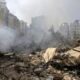 Truk pos terdampar di atas reruntuhan sebuah bangunan dan pepohonan. Video lain menunjukkan balok kayu berserakan di mana-mana. Tim penyelamat bergerak dari rumah ke rumah untuk mencari korban atau penyintas.